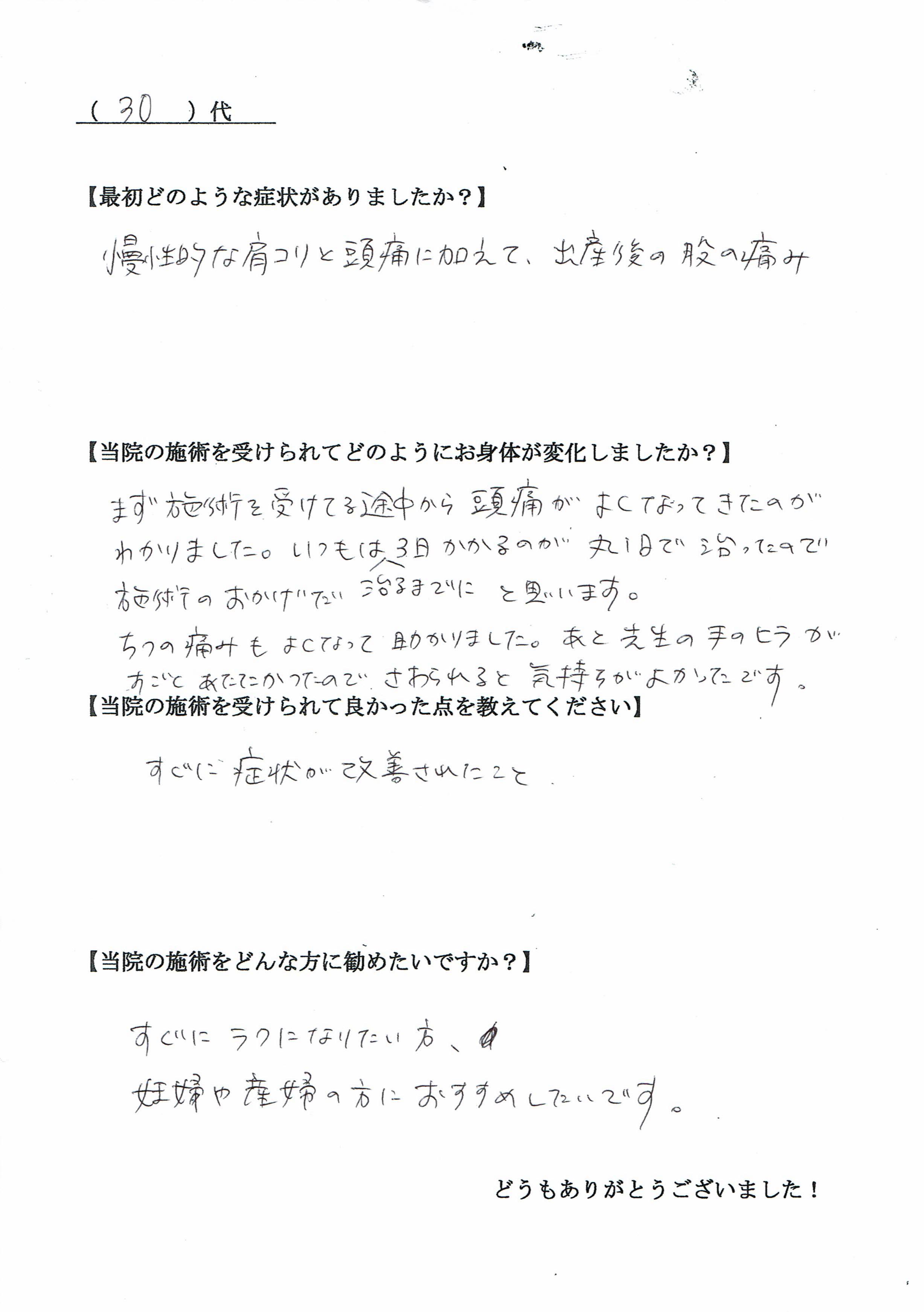 不安障害、頭痛で悩んでいたのが、整体に通って楽になりました。